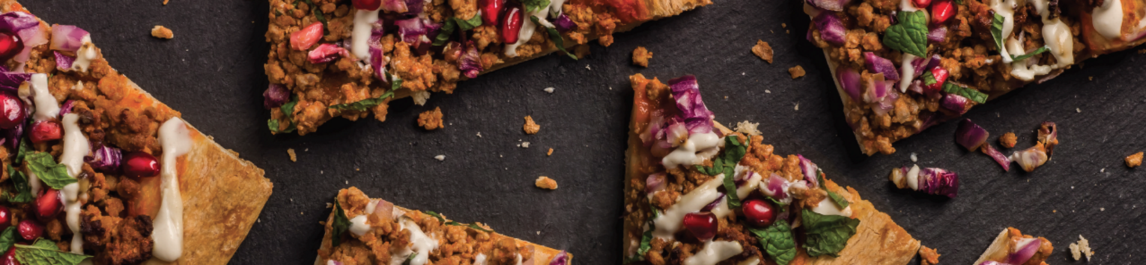 - Mix the tahini and yoghurt and drizzle over the finished pizza